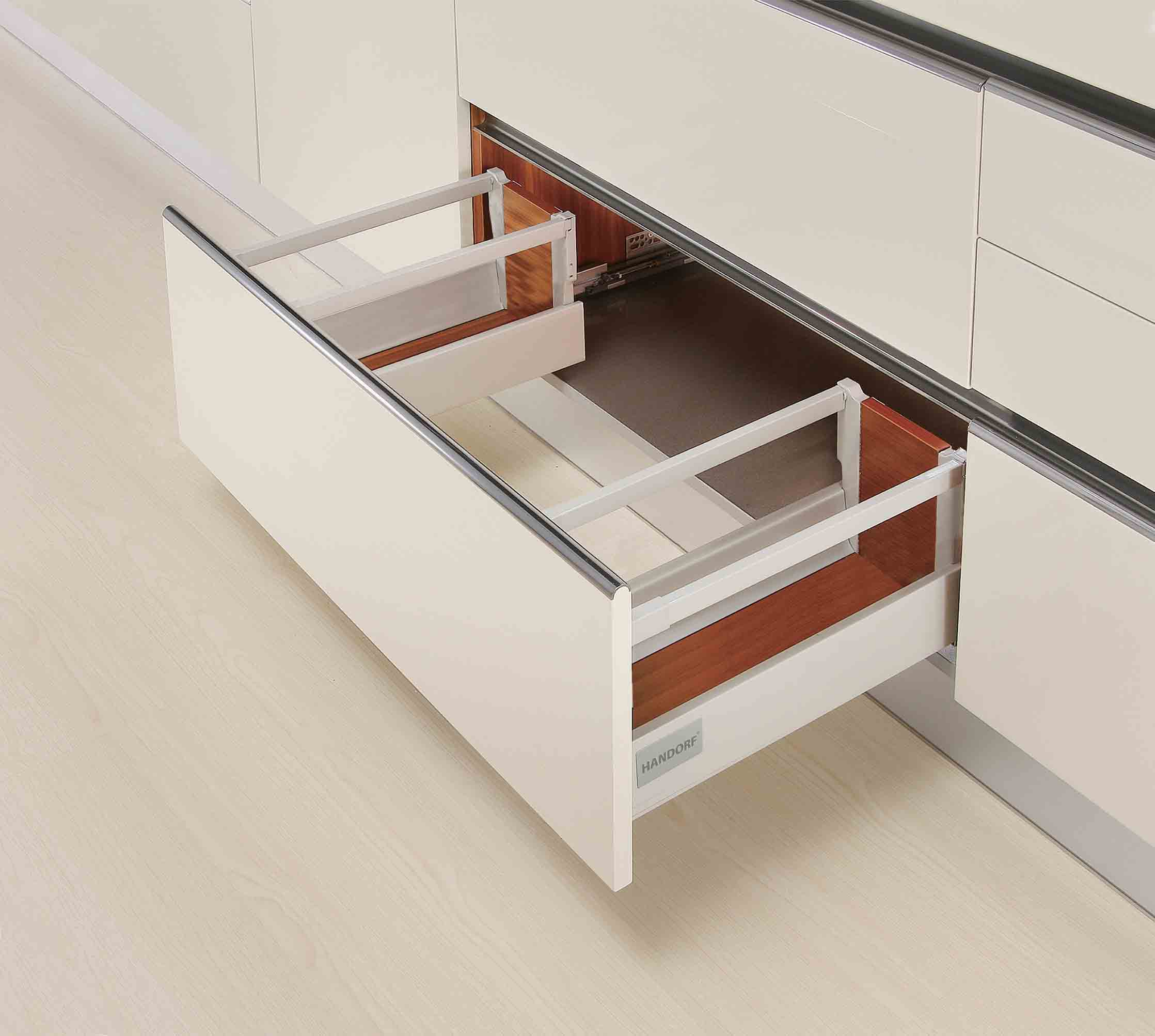 A U-shaped drawer can be made to suit the shape of your sink. It’s a very flexible solution and uses the nooks on each side of the sink, which would otherwise be wasted.