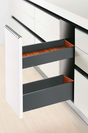 Narrow cabinets turn tiny kitchen spaces into valuable storage. Handorf Bottle Pull-Outs with diagonally offset runners creates additional storage space – without compromising stability or quality of motion.